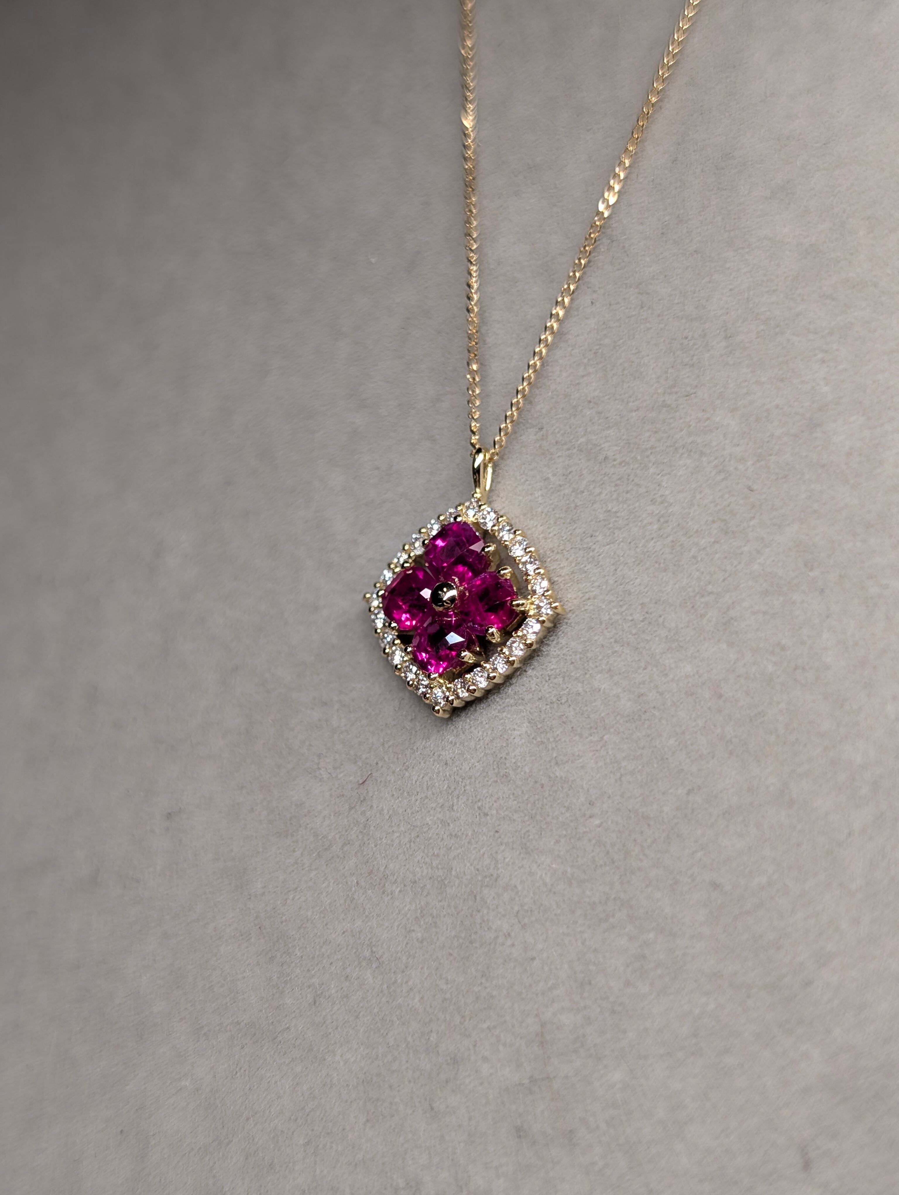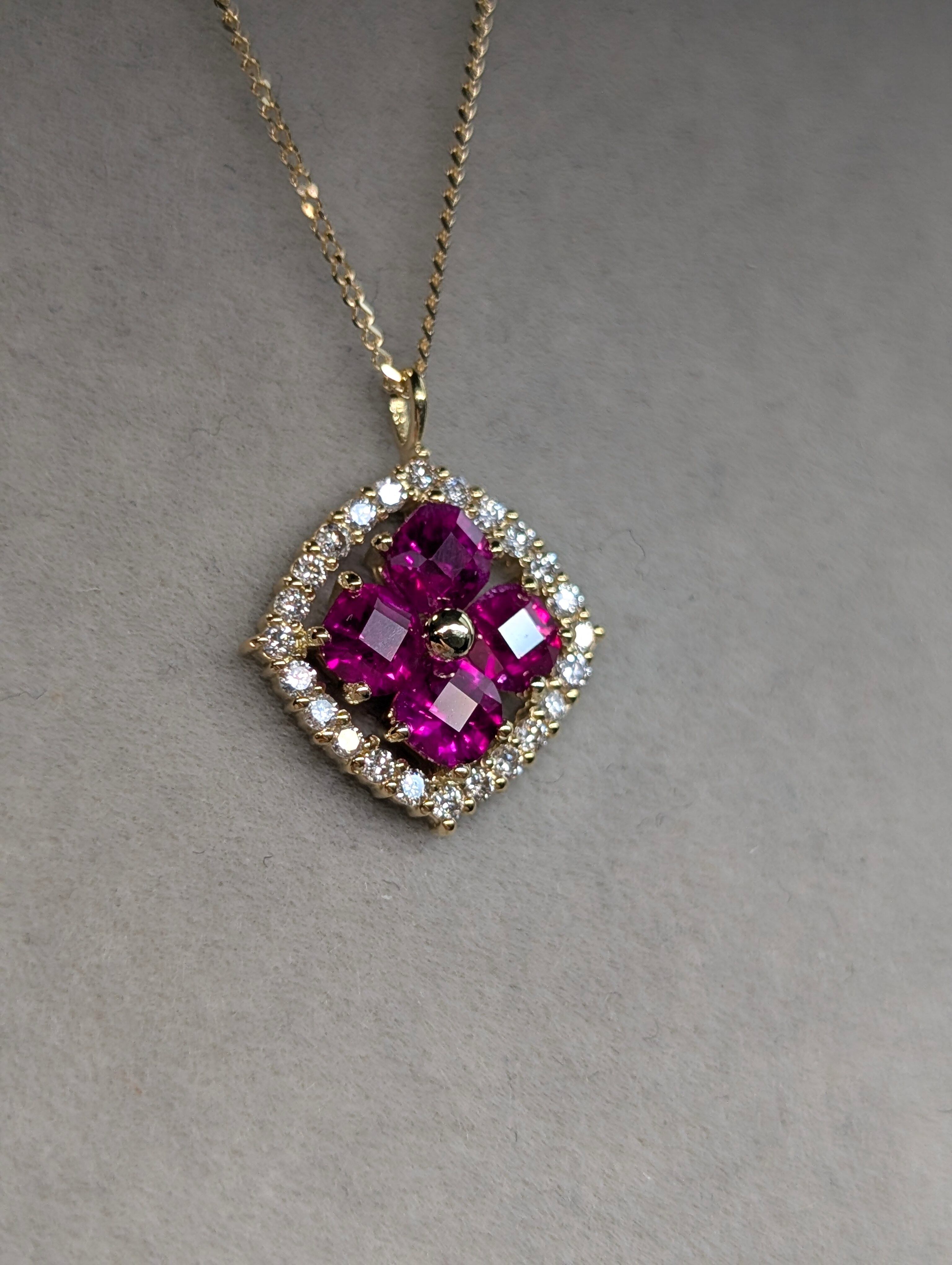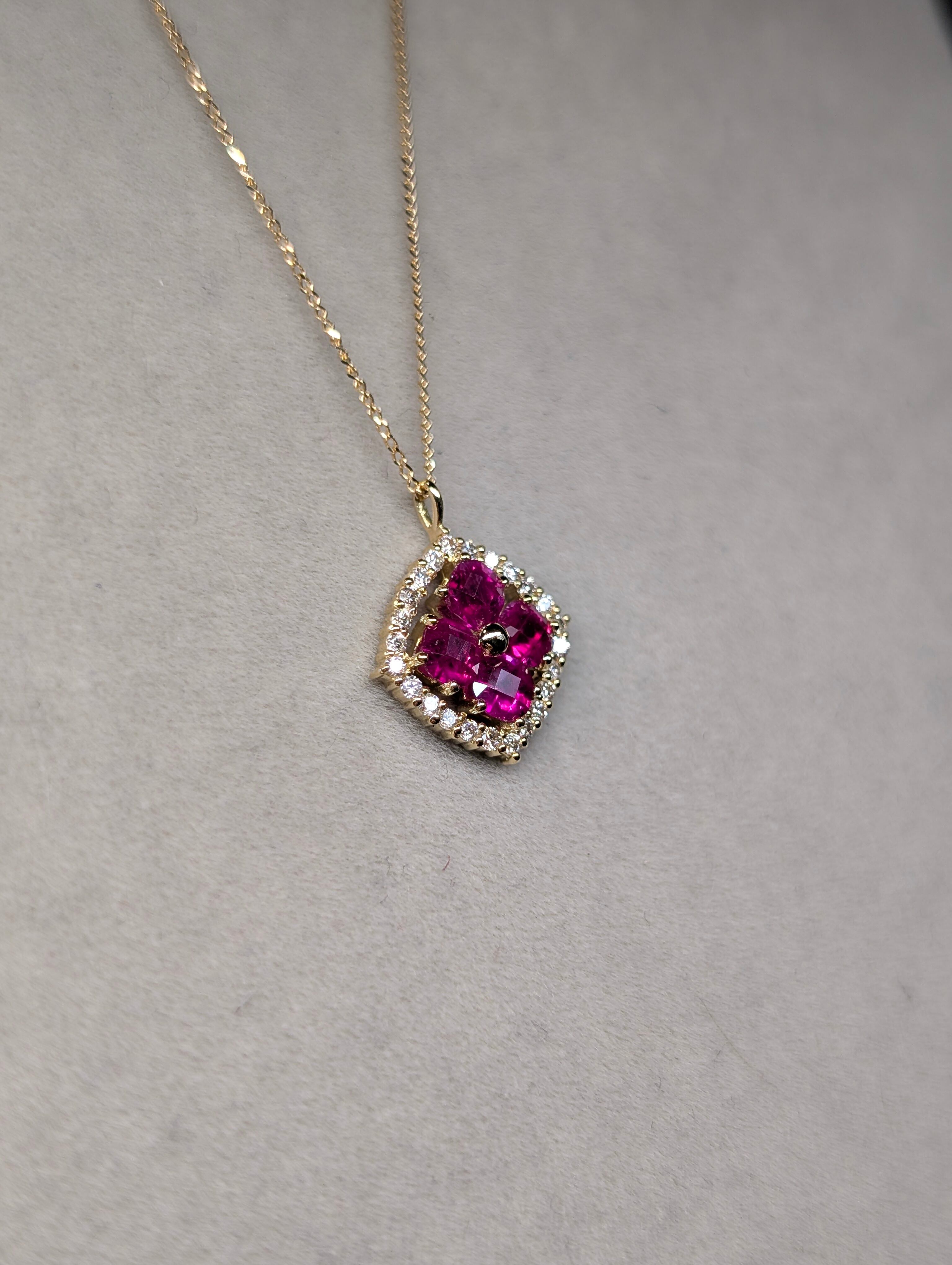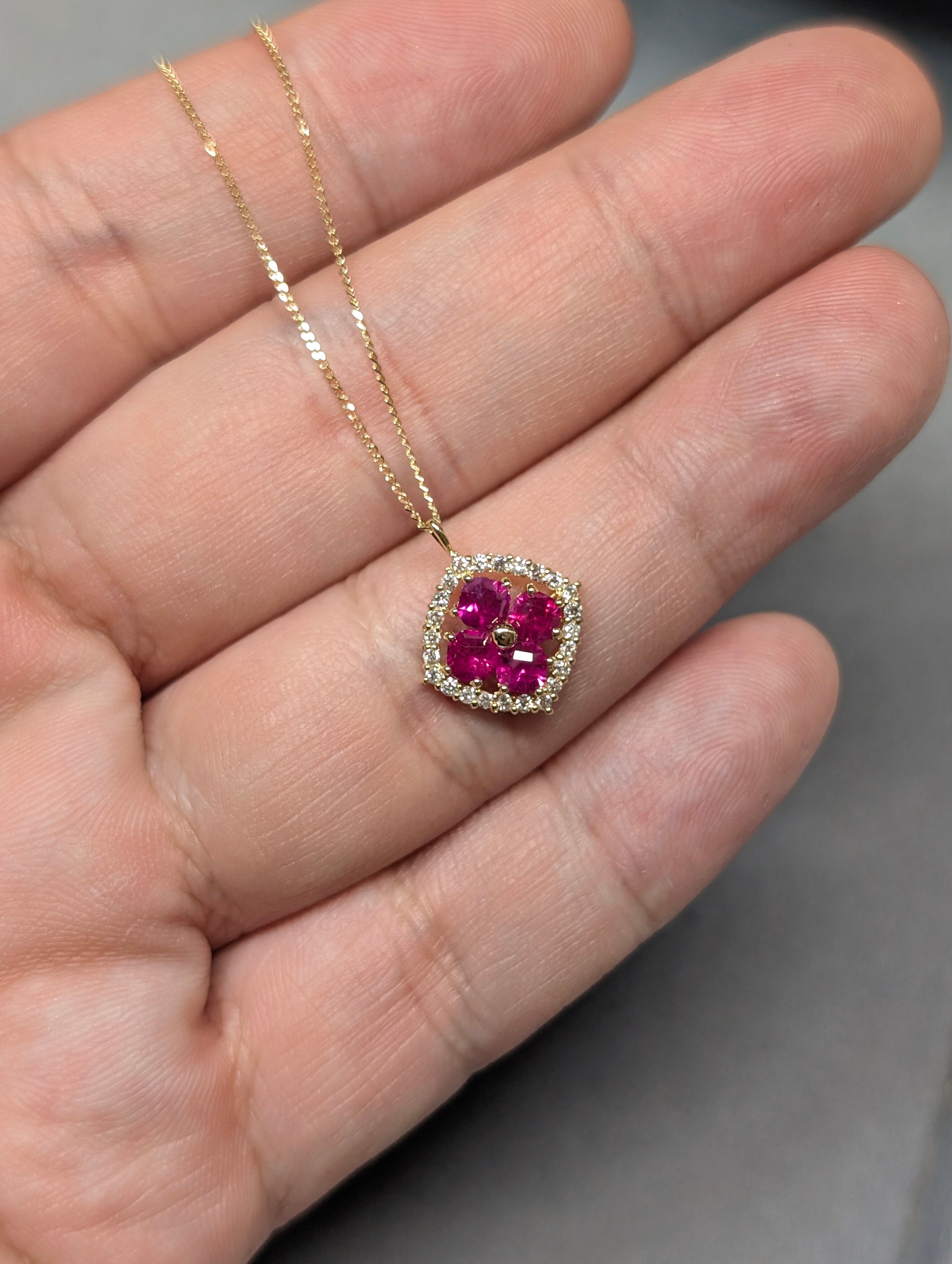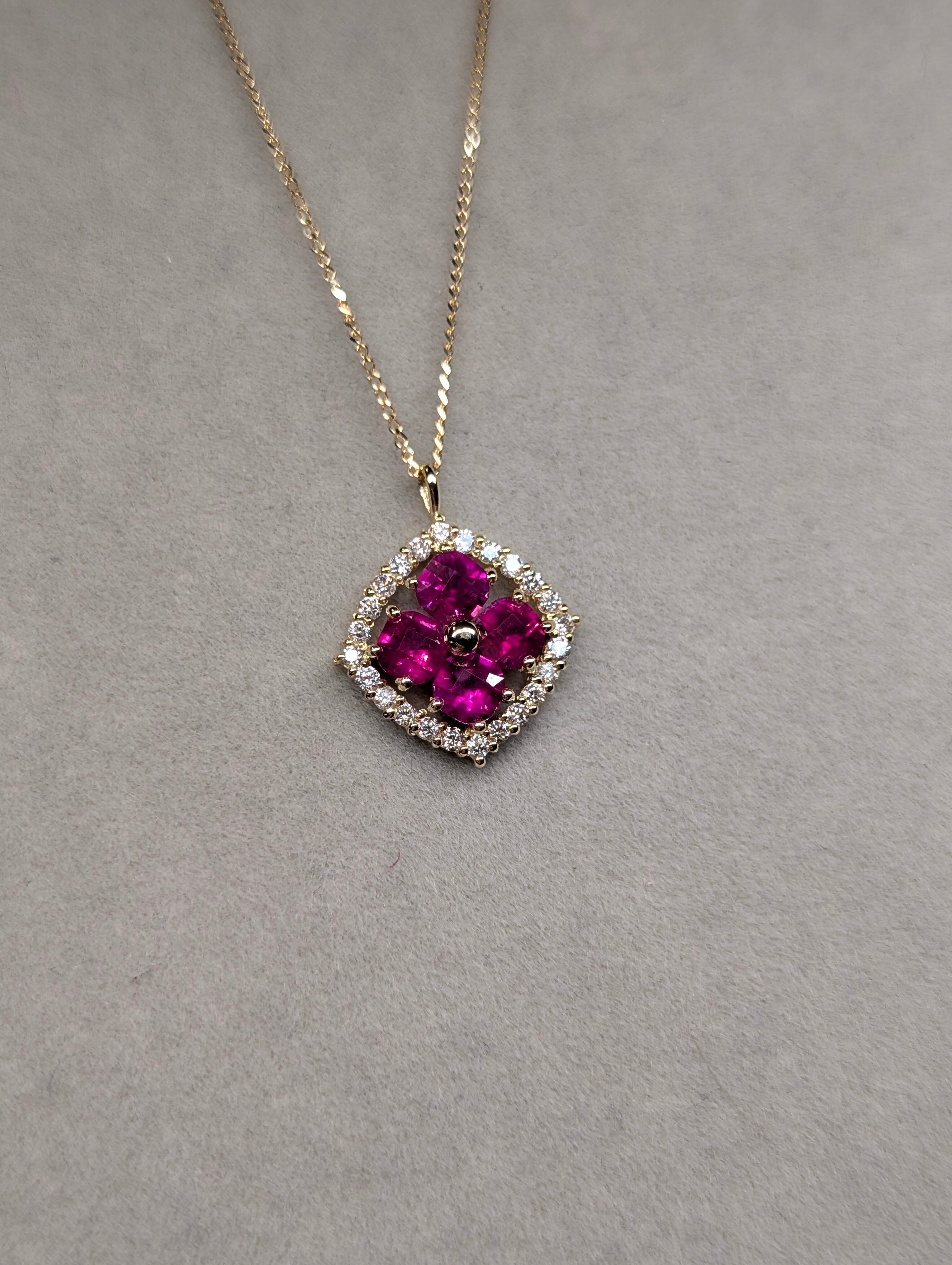 K18ルビー 0.60ct ダイヤモンド0.12ct スライドアジャスターチェーン付きペンダント 新品ジュエリー