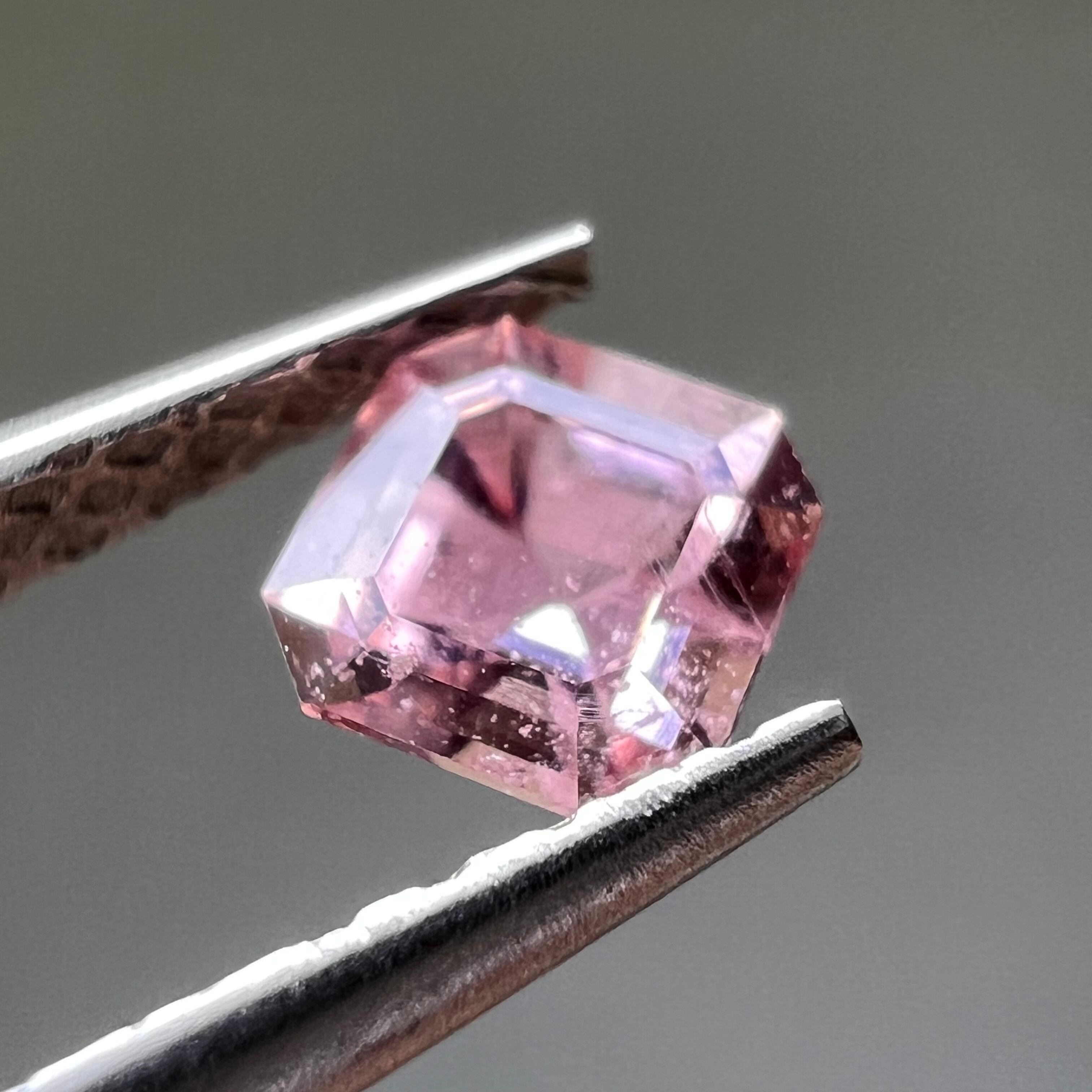 エメラルドカットのスッキリとしたパパラチアサファイアで優しい色合い、適度なオレンジ色が美しいピース。