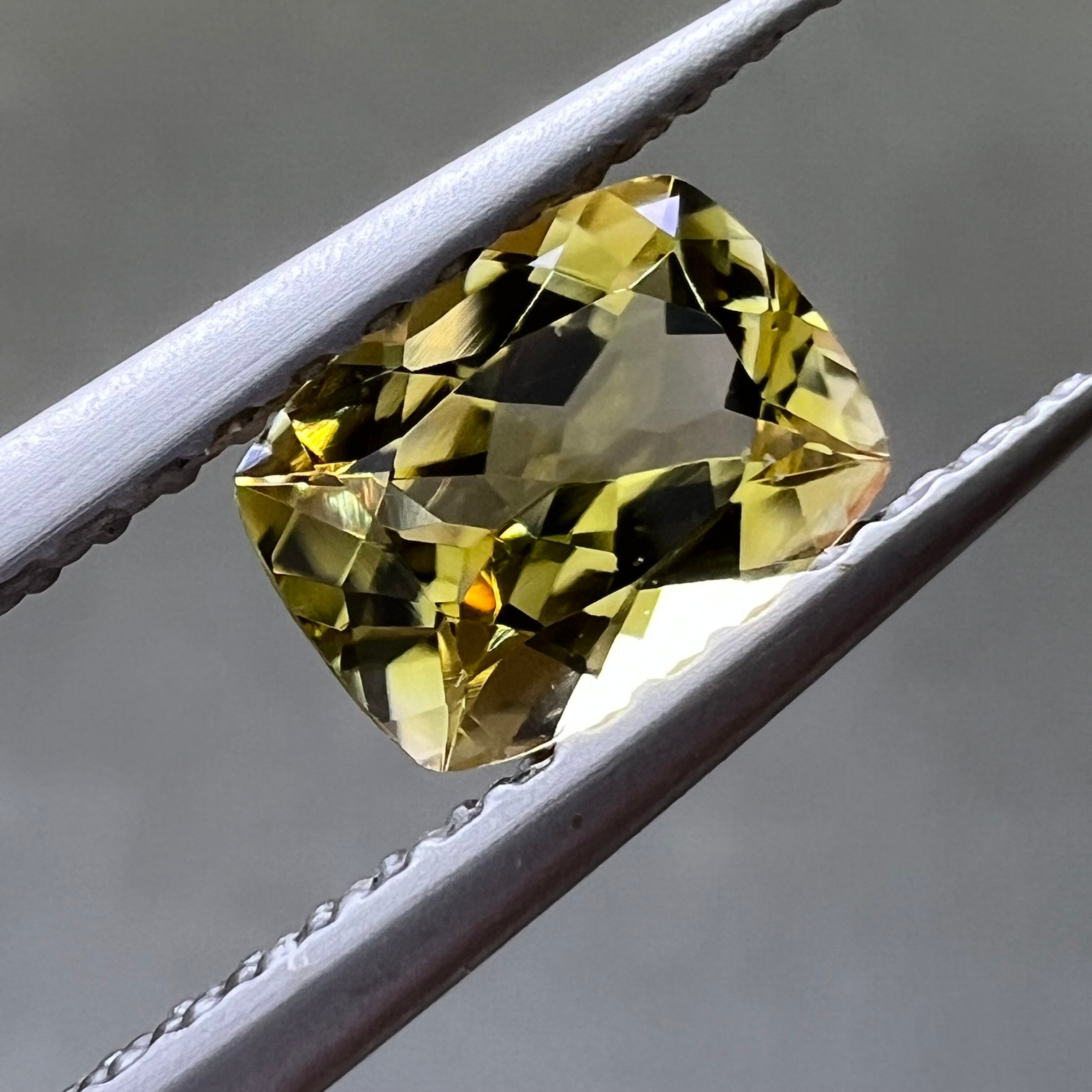 イエロートルマリン 1.32ct 7.8×6.1mm クッションカットルース