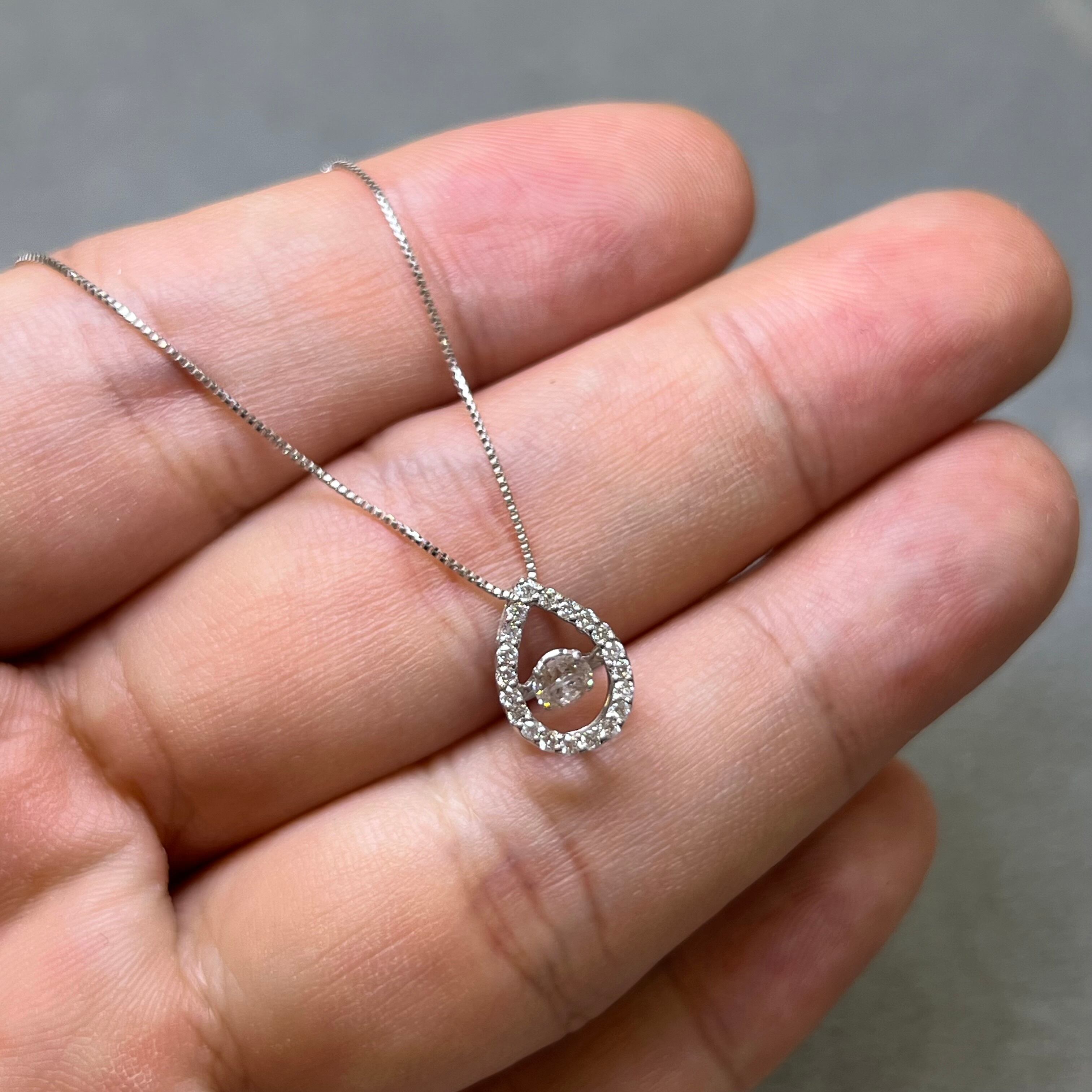 K18WGダイヤモンド 0.32ct ダンシングストーンペンダント used jewelry 45cmスライドアジャスターベネチアンチェーン付き