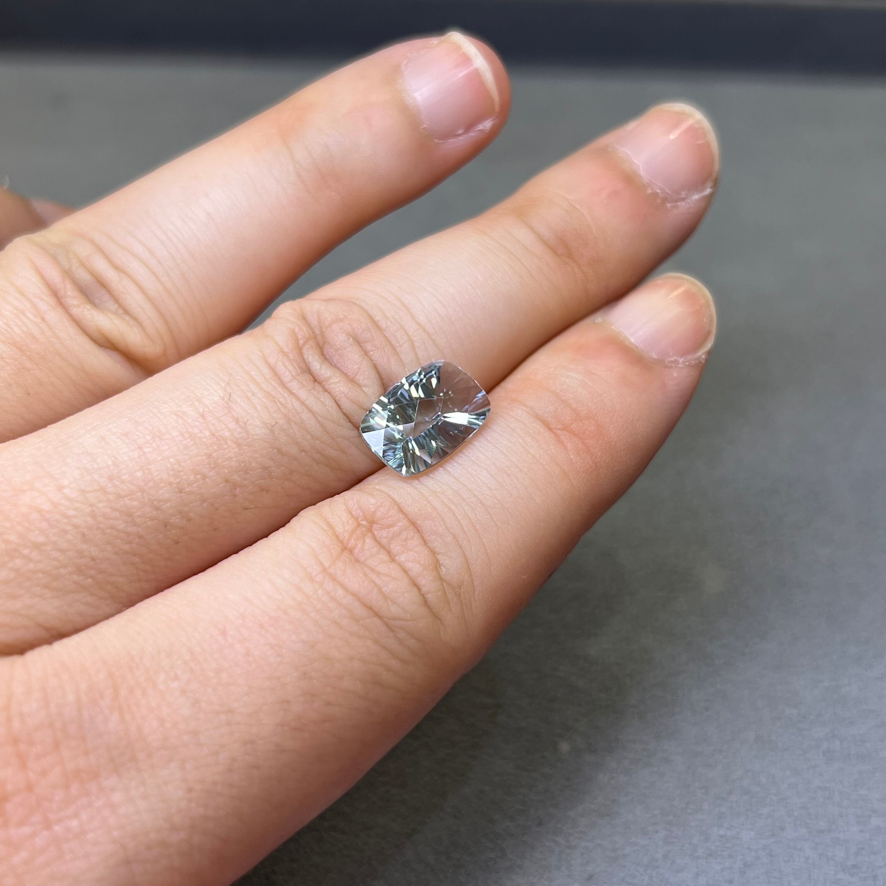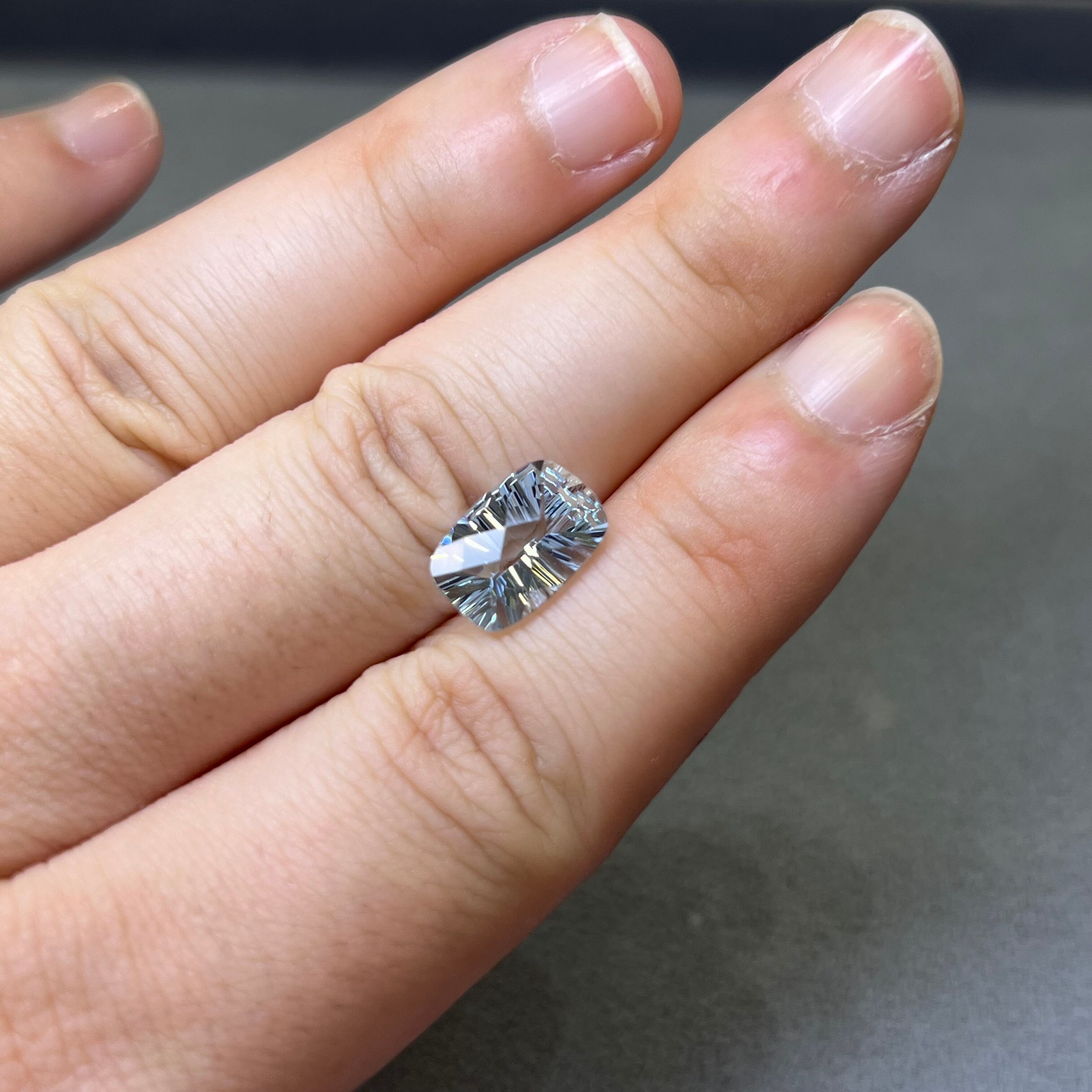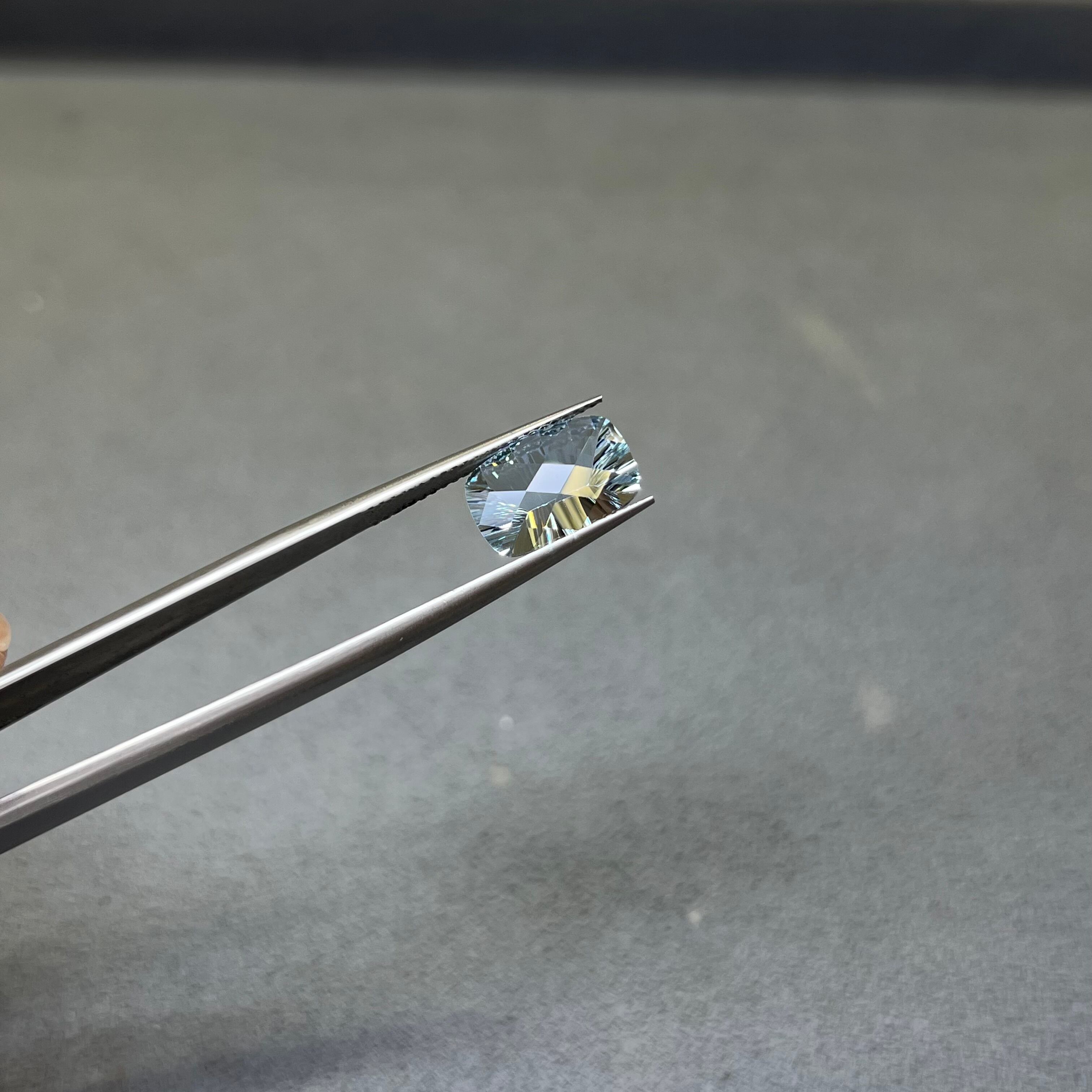 アクアマリン 2.85ct 11.96mm×8.05mm クッション チェスカット&コンケイブカット ルース