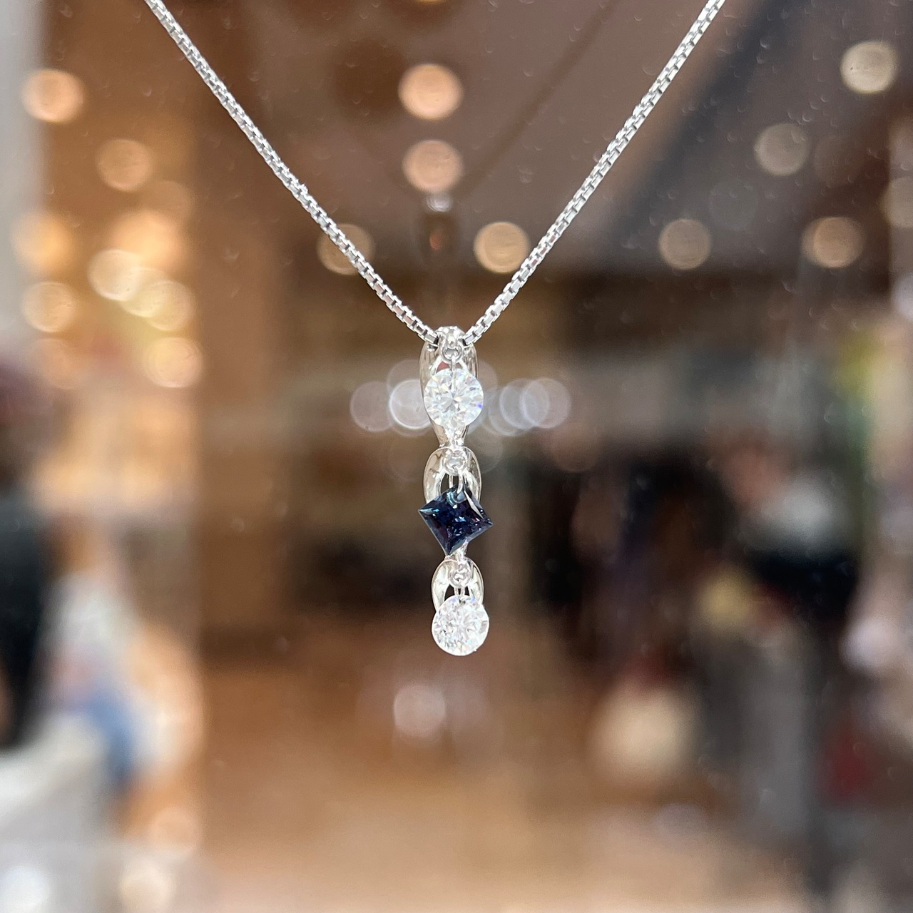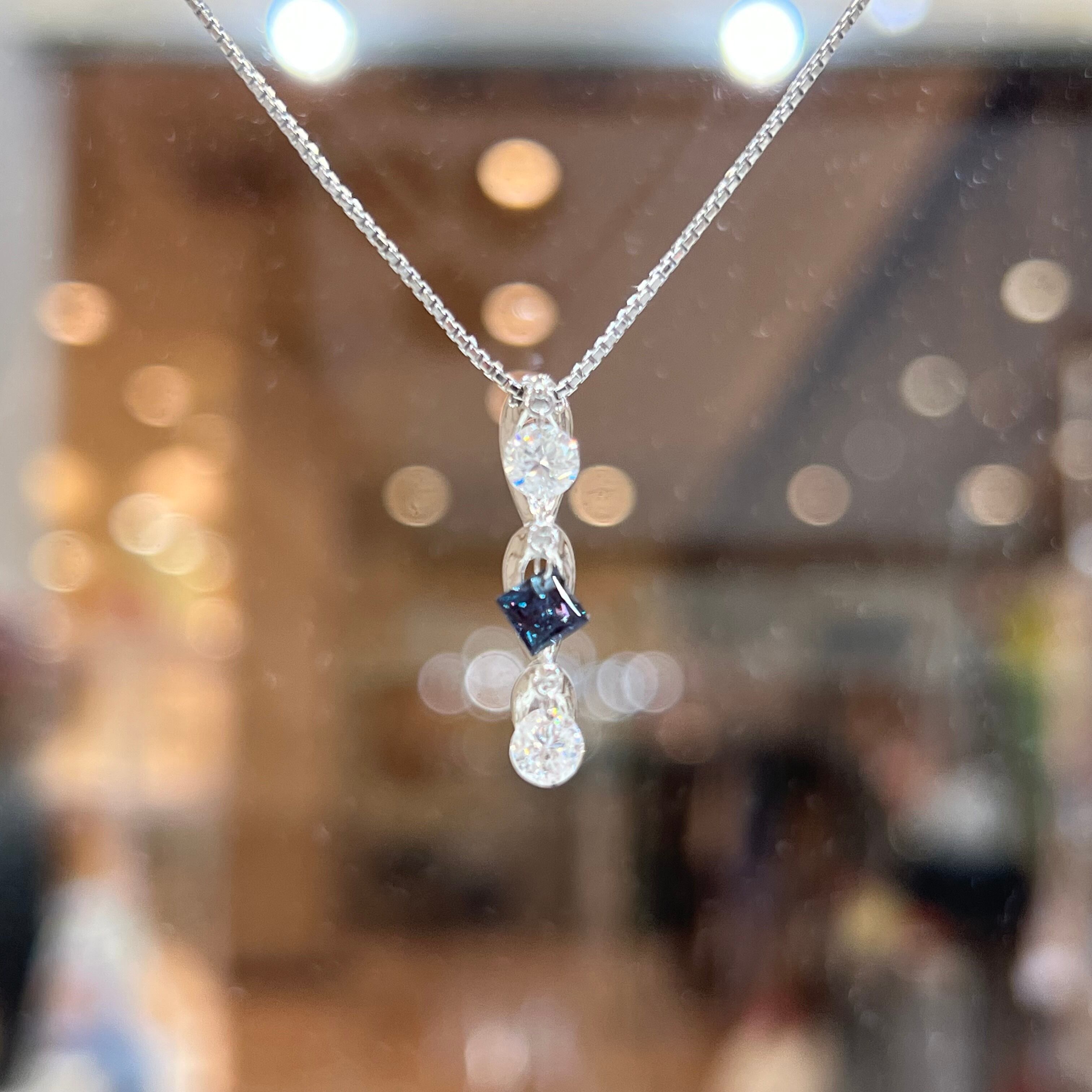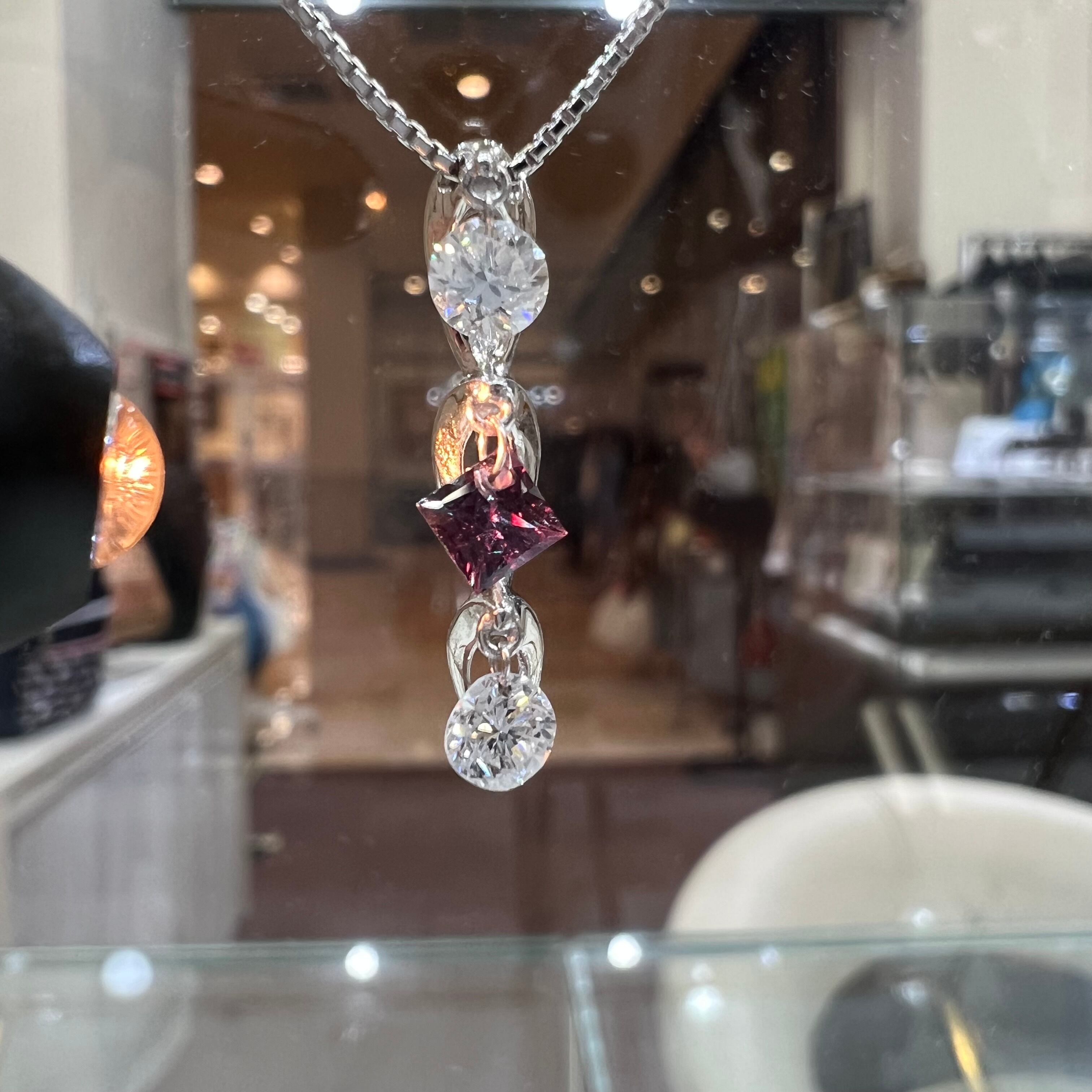 ゆらゆらと胸元で煌めきを増幅するデザインです!