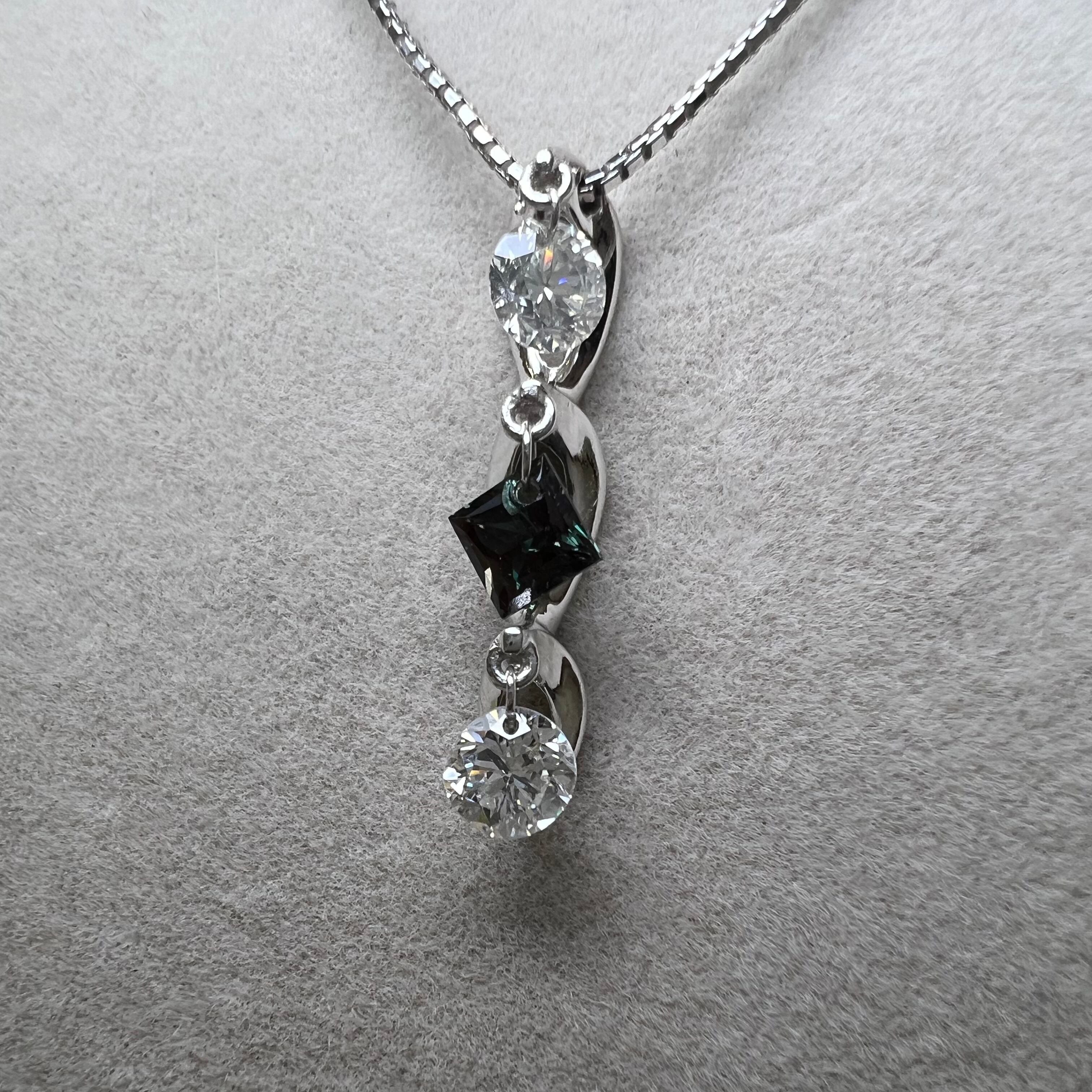 それぞれのルースにレーザーで穴あけがされていてK18WGのマルカンで揺れるように加工されています。
