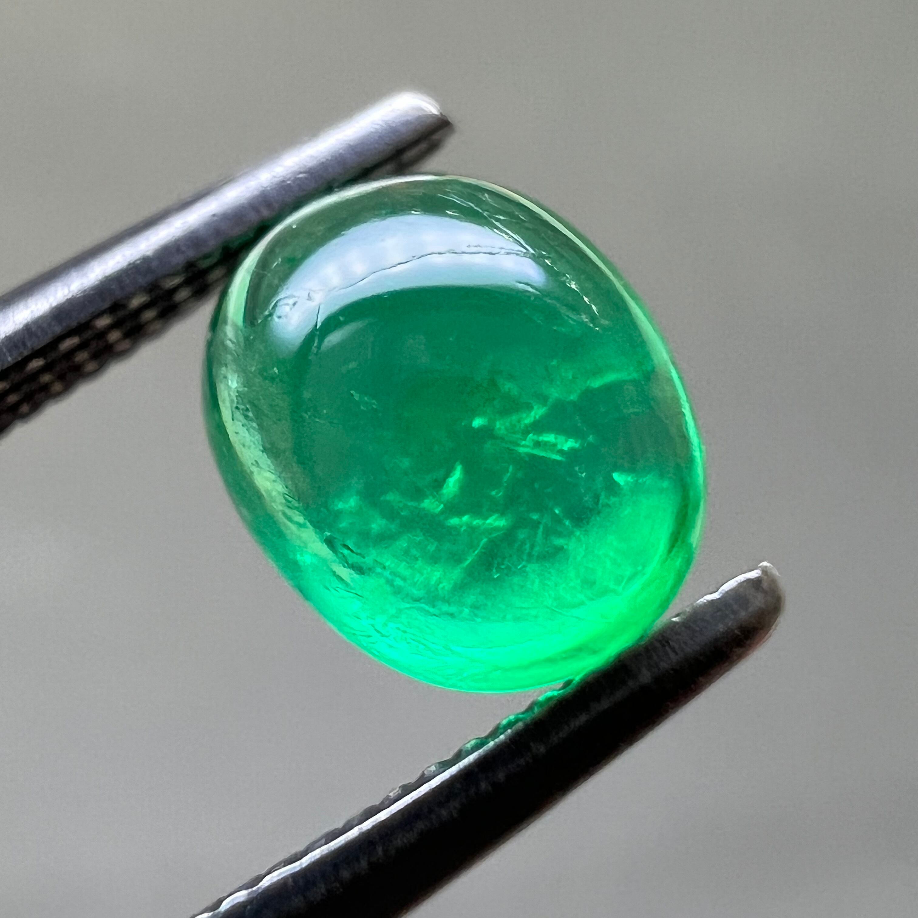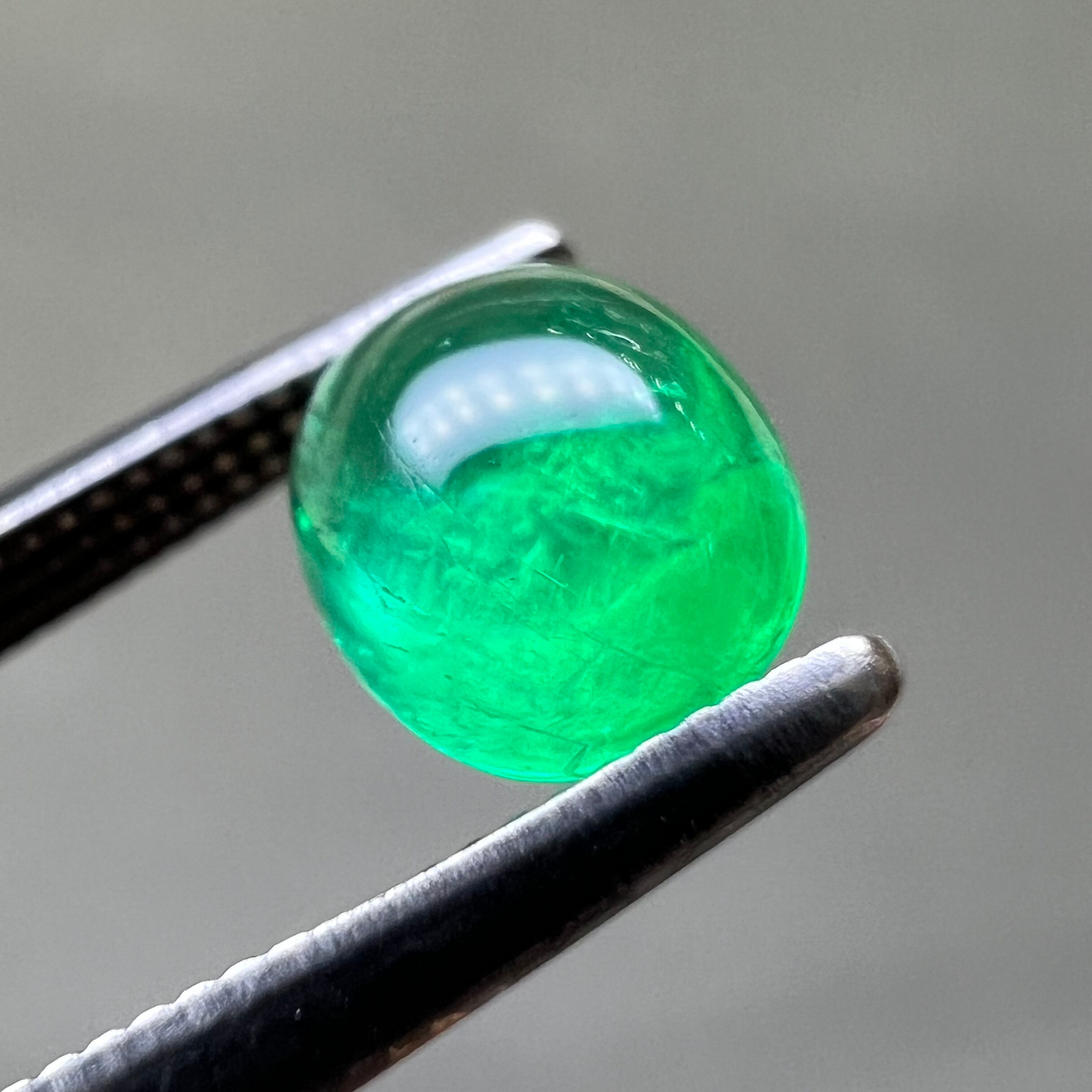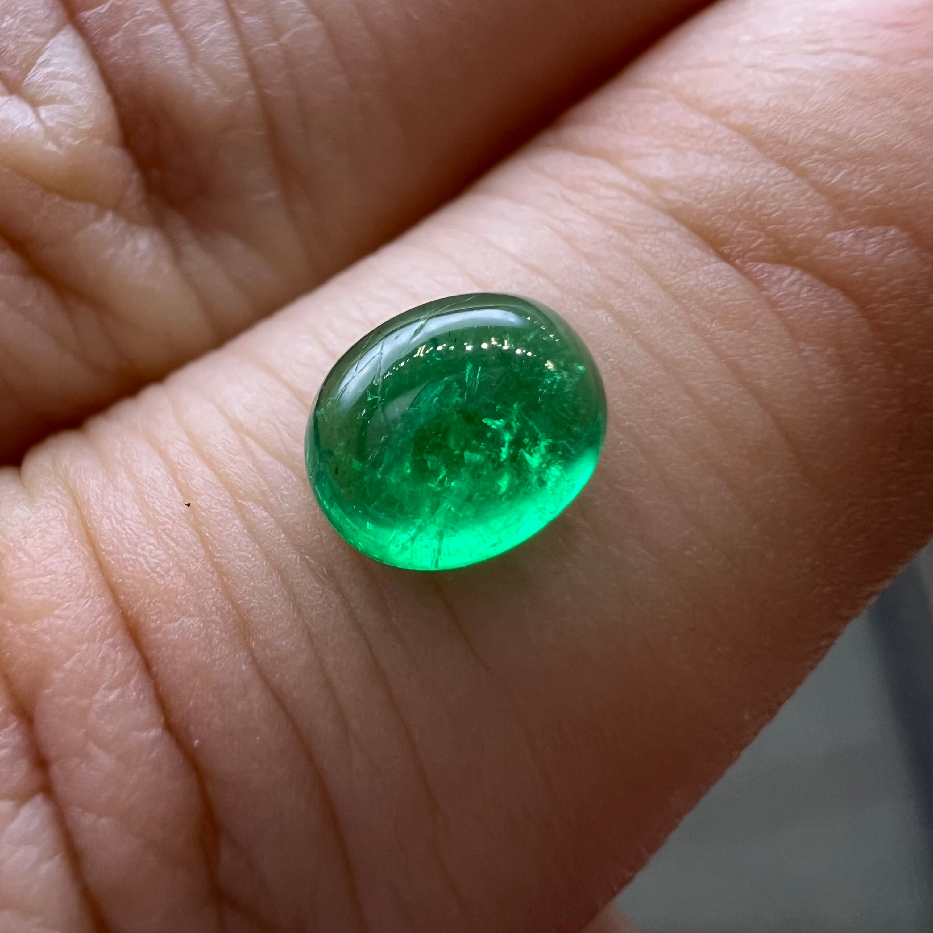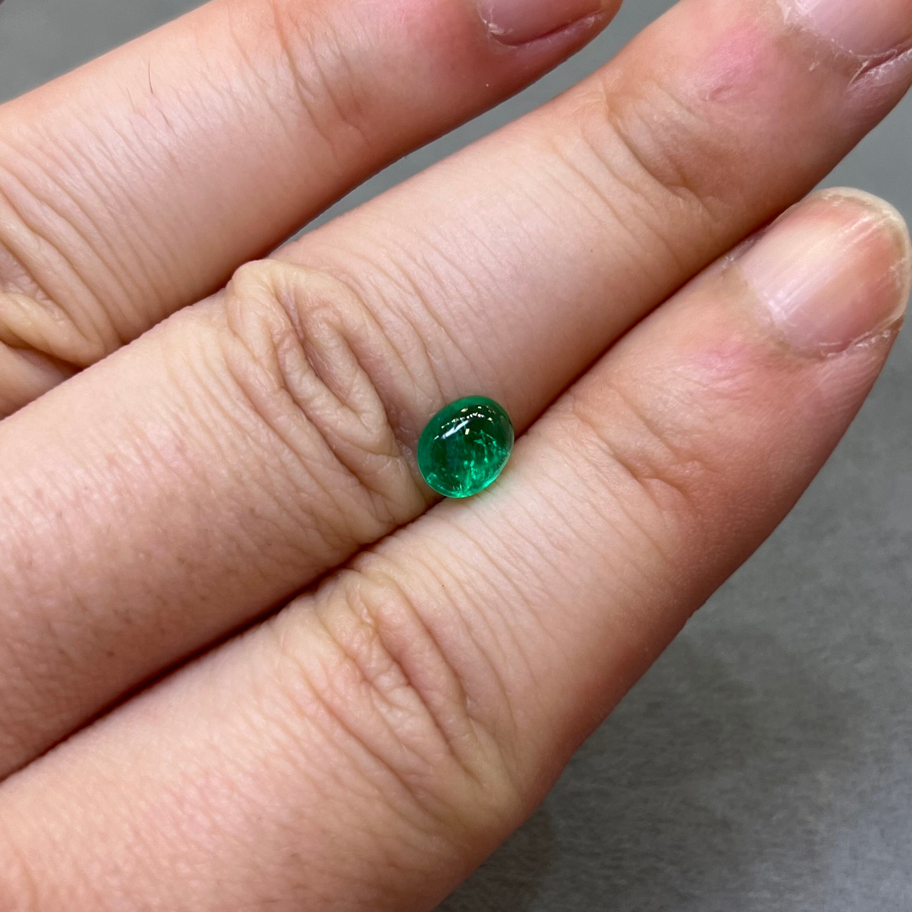 【日独ソ】エメラルド 0.766ct 6.62mm×5.49mm オーバルカボションカットルース 日独宝石研究所ソーティング付き