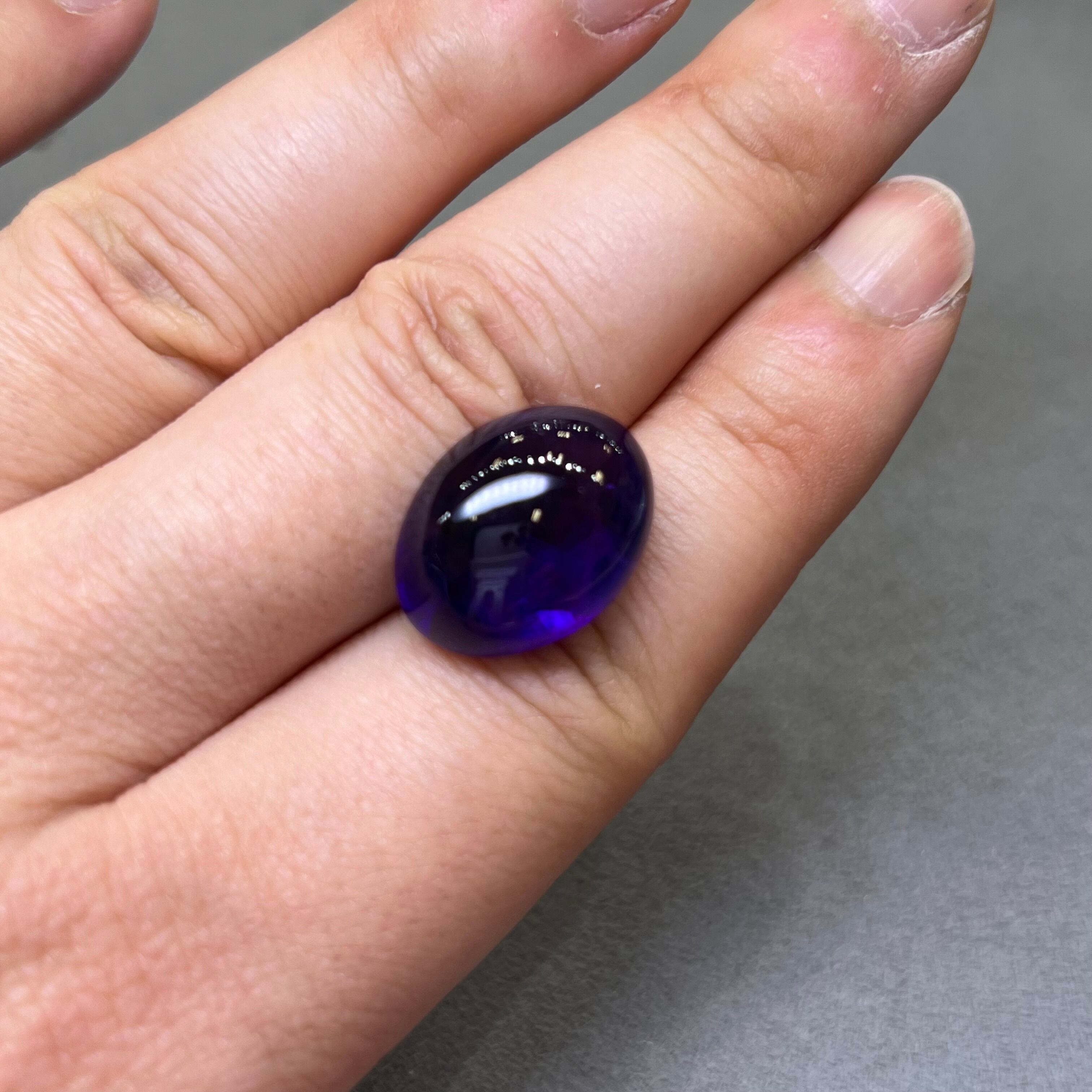 【日独ソ】アメシスト 16.353ct 18.89mm×14.35mm×10.37mm バフトップカット 国内リカット済 日独宝石研究所ソーティング付き
