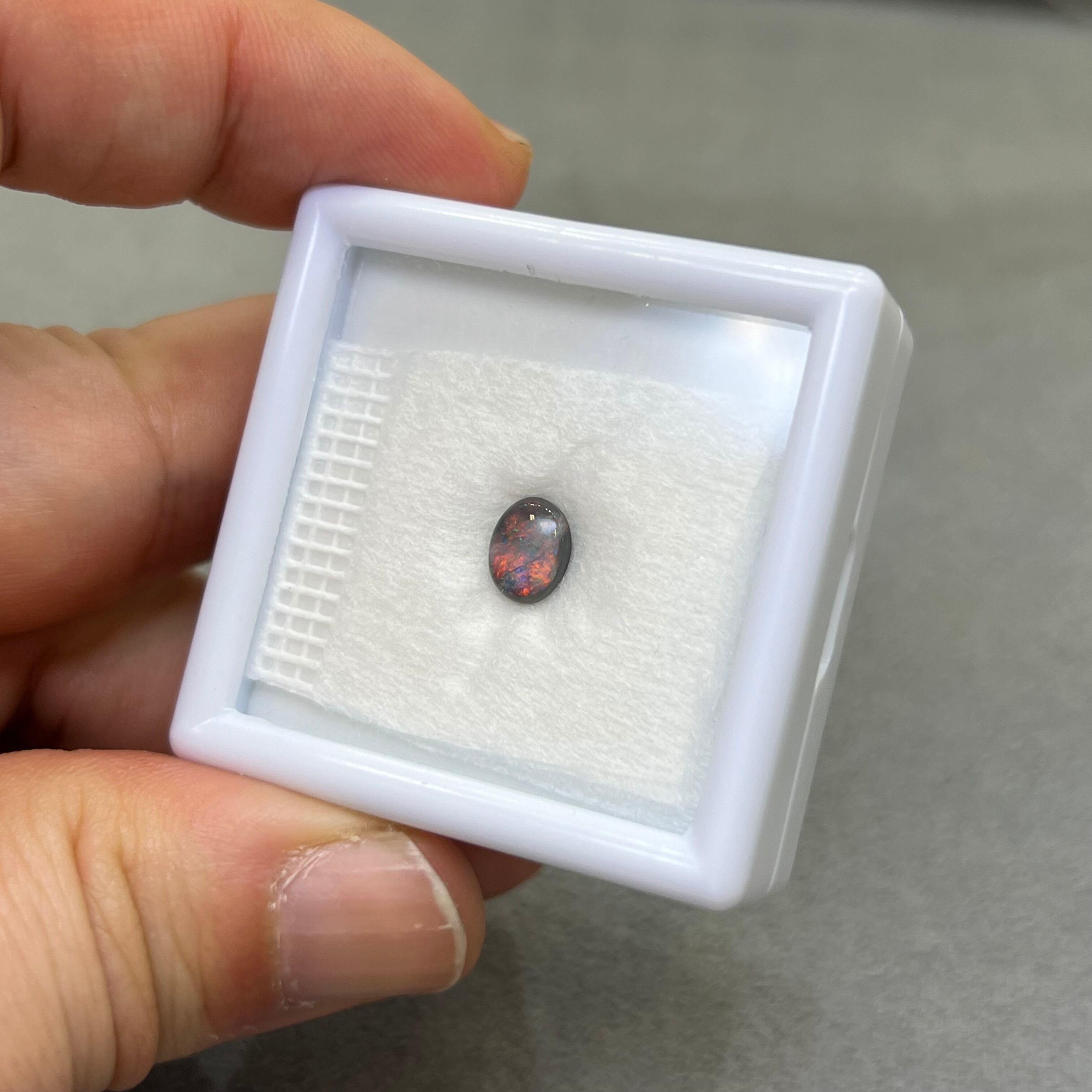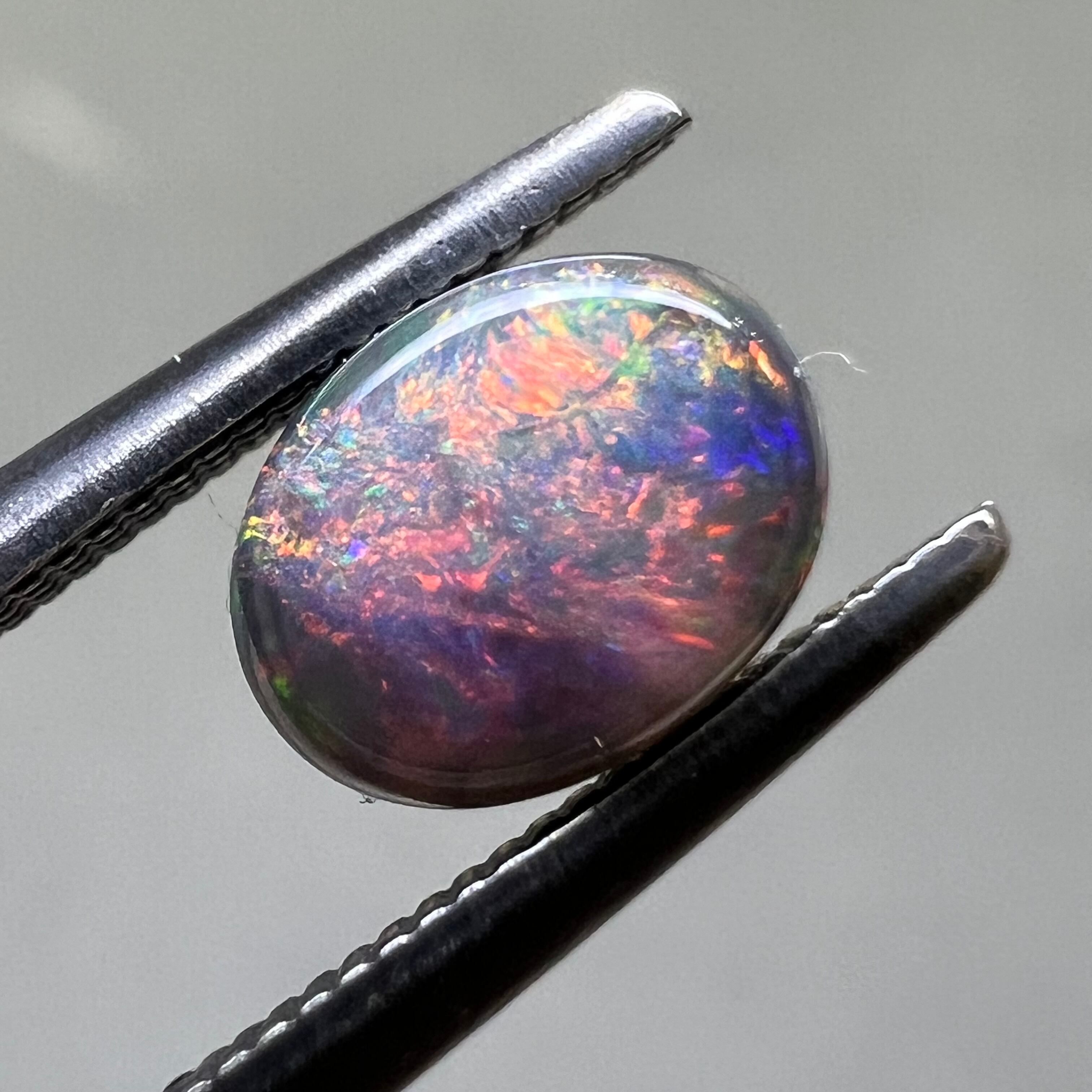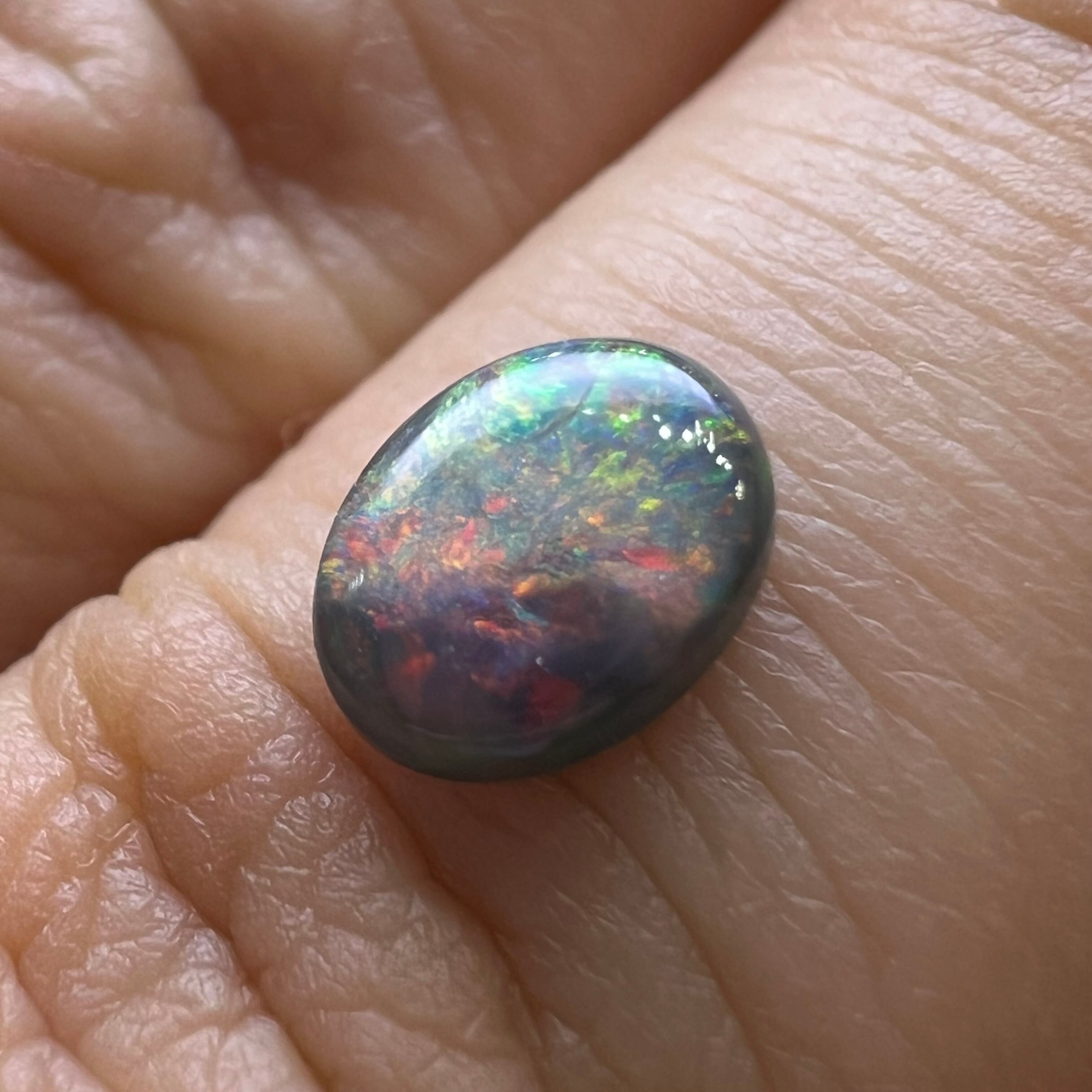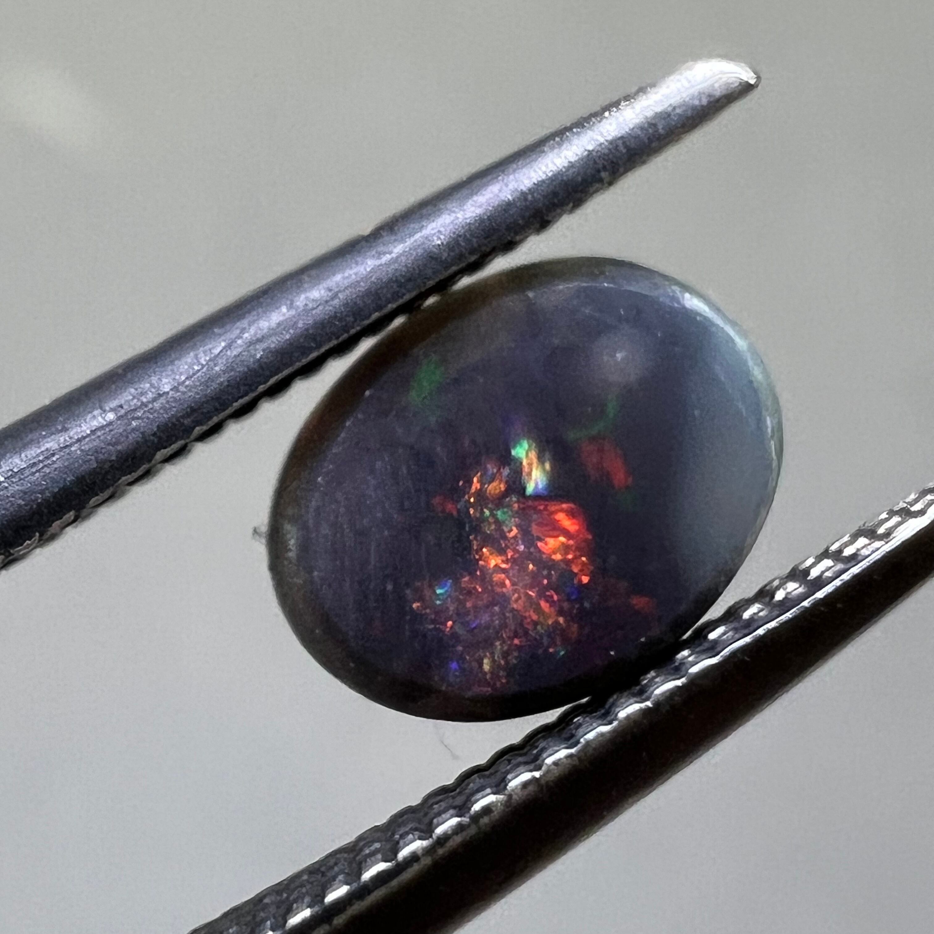 【日独ソ】ブラックオパール 0.632ct 6.94mm×5.29mm×2.53mmオーバルカボションルース 国内リポリッシュ済 日独宝石研究所ソーティング付き