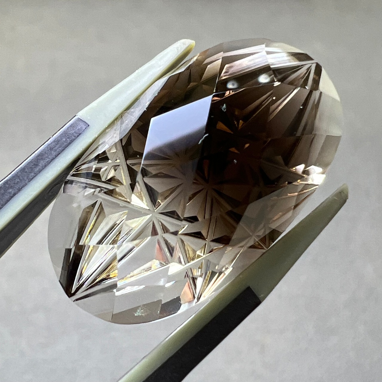 甲州貴石切子 バイカラースモーキークォーツ 22.83ct 25mm×14.7mm オーバルルース