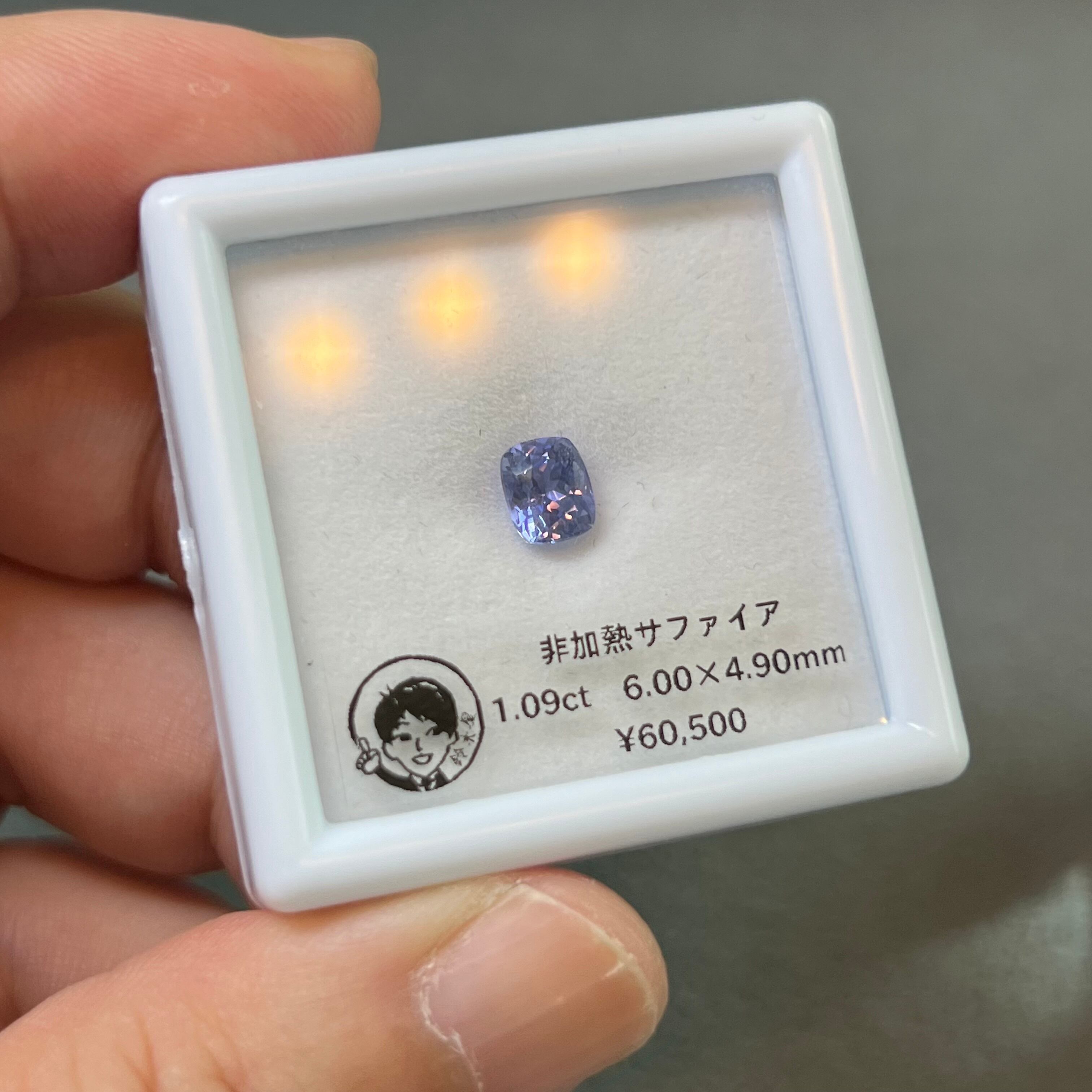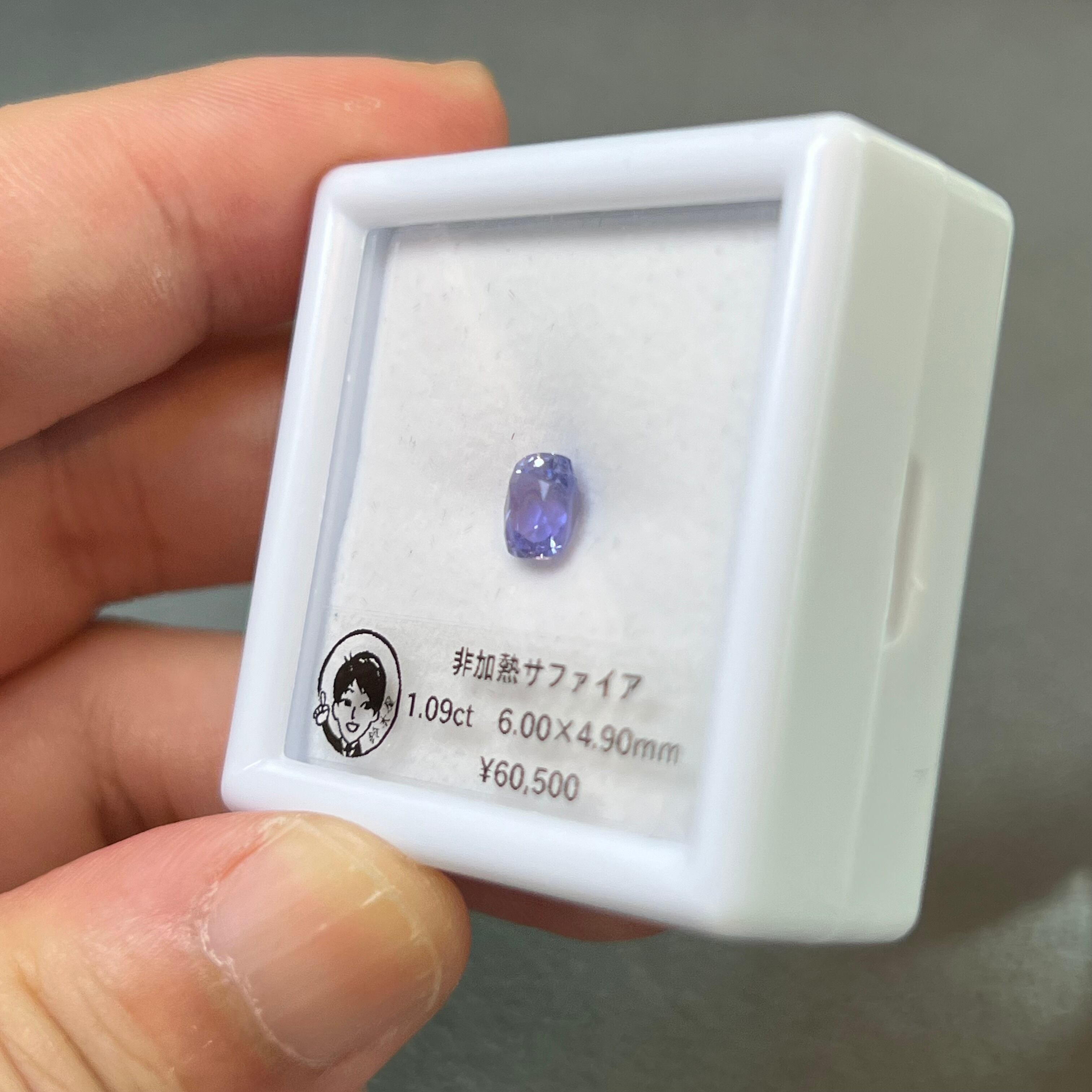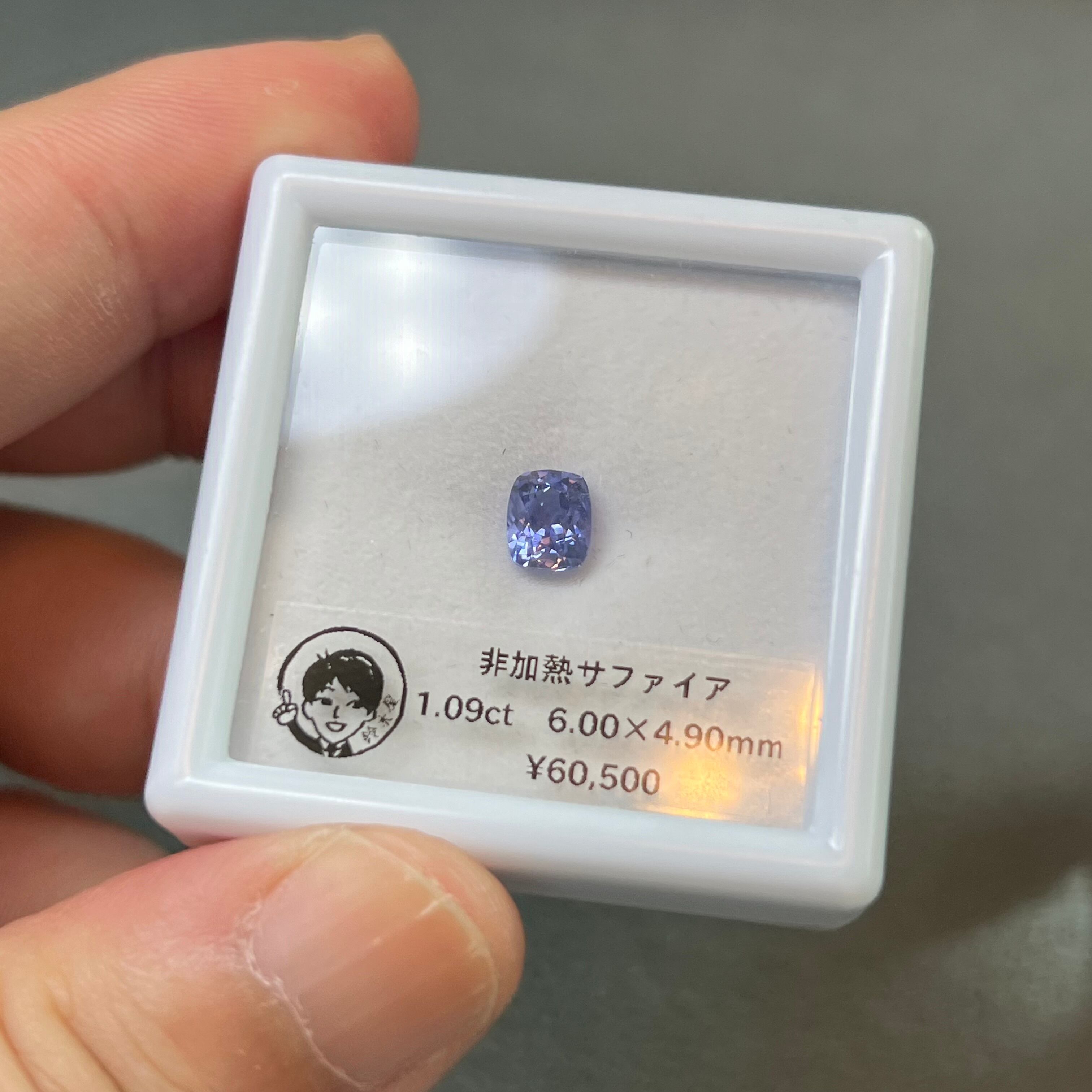 非加熱サファイア 1.09ct 6.00×4.90mm クッションカット アイスブルー