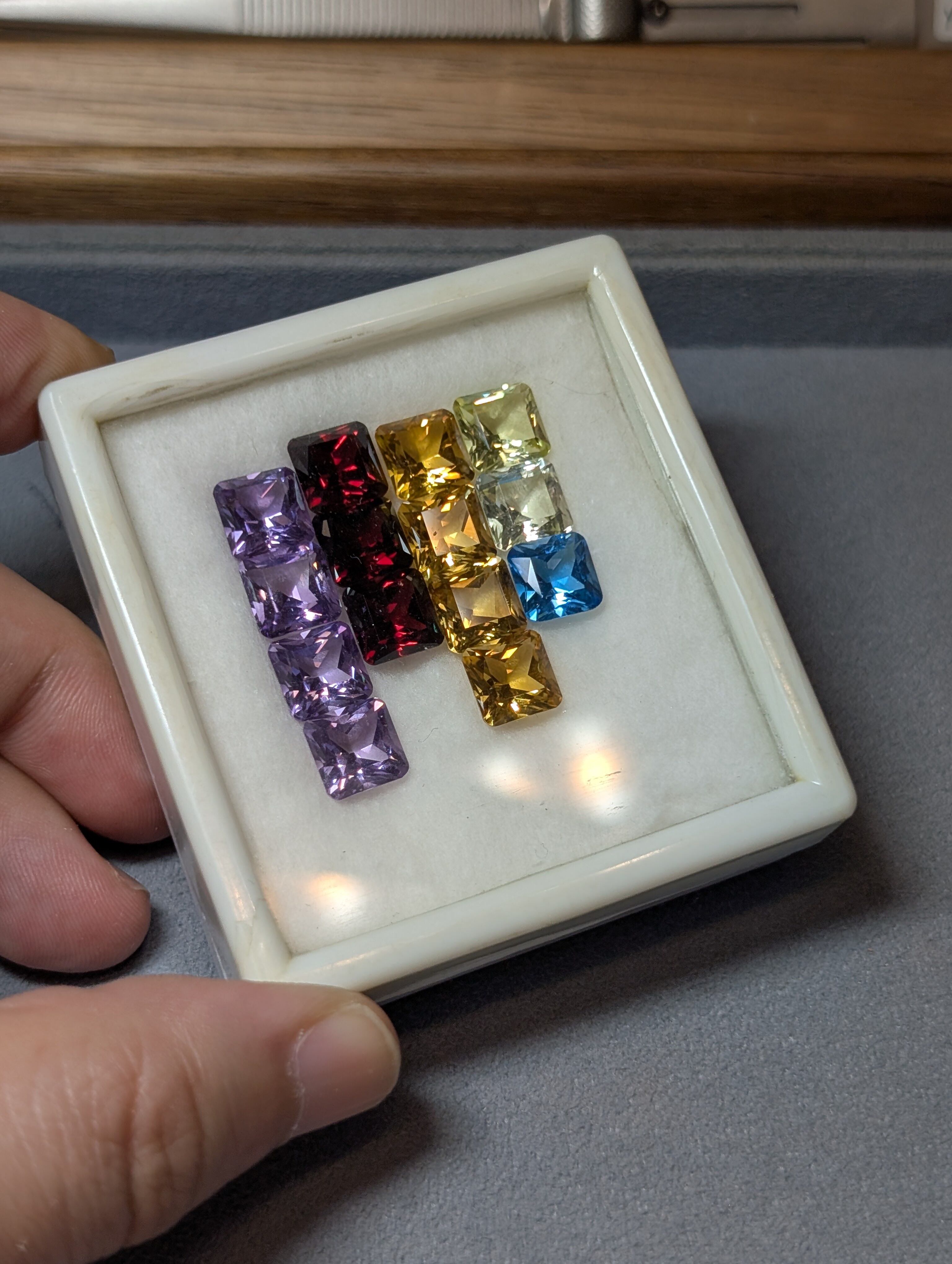 ガーネット(左2列目) 8mm スクエアシザースカットルース ケースの中から1pcs シミズ貴石蔵出しルース
