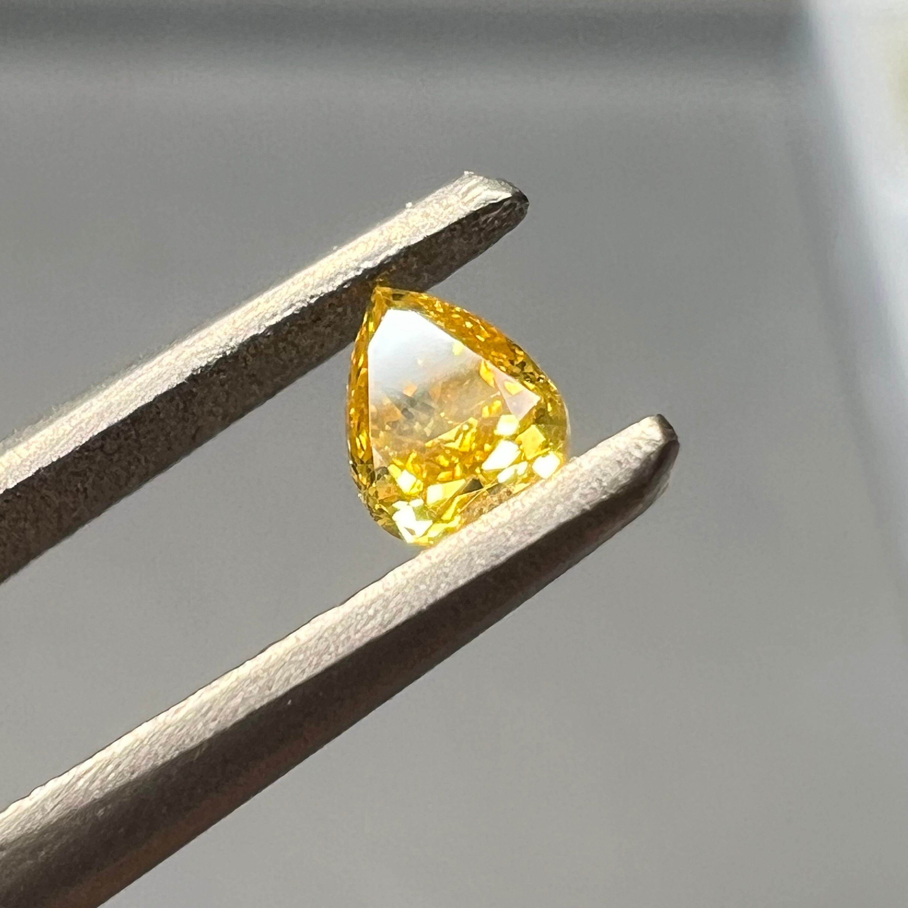 FANCY VIVID ORANGY YELLOW 0.100ct SI-2 ペアシェイプ 3.43×2.55×1.61mm CGLソーティング付